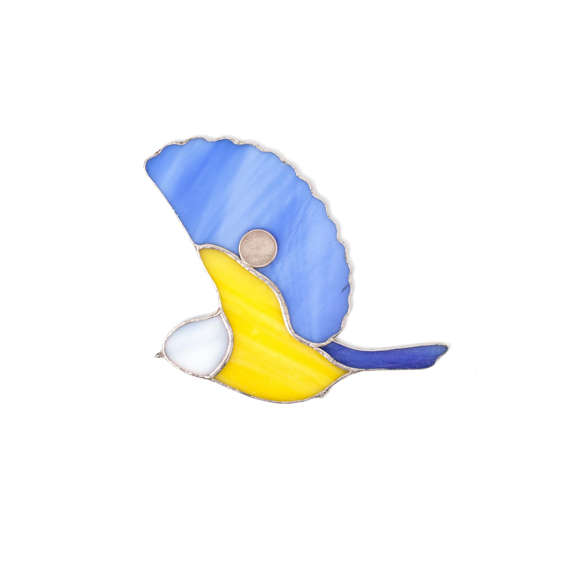 Flying Tit Stained Glass Magnet – Handmade Bird Refrigerator Decor & Gift